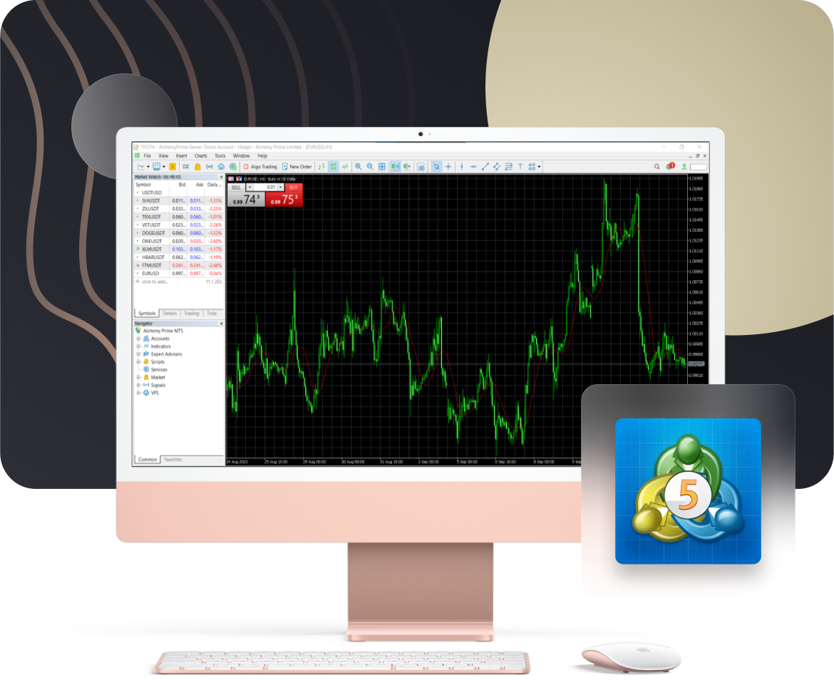 Commercial trading platforms such as MT5 are developed by third parties (MetaQuotes) for the retail investor market, and access to their services is provided by licensed brokers like Alchemy Markets. When you become our client, you can trade our entire product range on MT5 with tight spreads, no commissions¹, and institutional liquidity and execution of your orders with speeds under <10ms. You will also have free access to sophisticated tools from Trading Central and FXBlue.